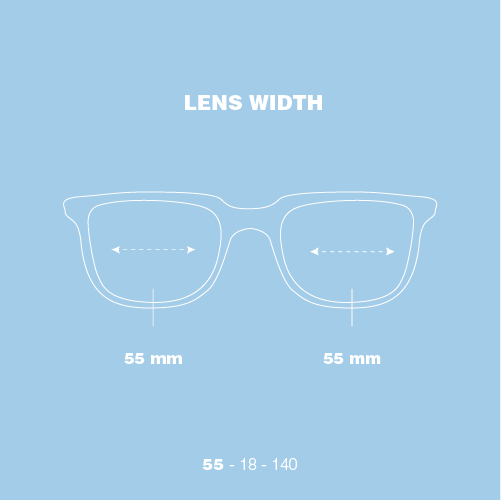 Lens width: 55 Bridge: 18 Temple: 140