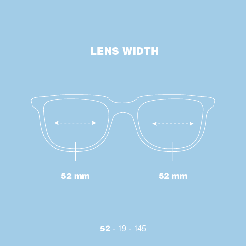 Lens width: 52 Bridge: 19 Temple: 145