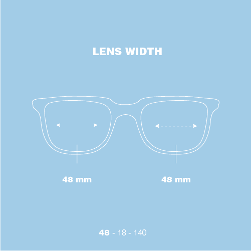 Lens width: 48 Bridge: 18 Temple: 140